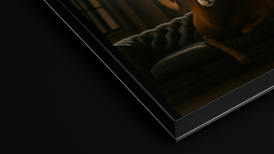 Zwischen Werk und Rahmen entsteht eine feine Schattenfuge, die das Motiv optisch freistellt und ihm Raum zum Atmen gibt.