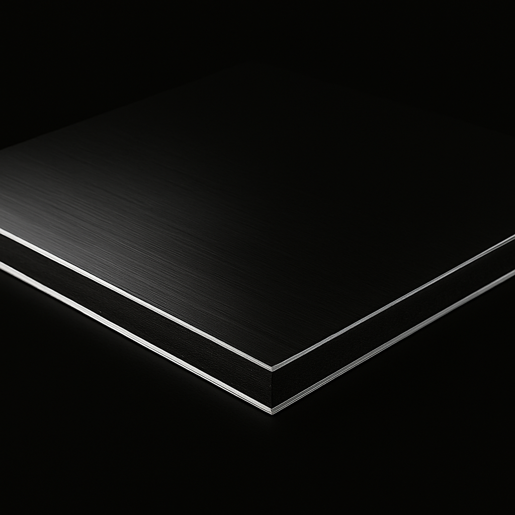 Das belichtete Foto wird auf eine 3 mm starke Alu-Dibond-Platte kaschiert – einem Verbund aus zwei dünnen Aluminiumschichten und einem schwarzen Polyethylenkern.
