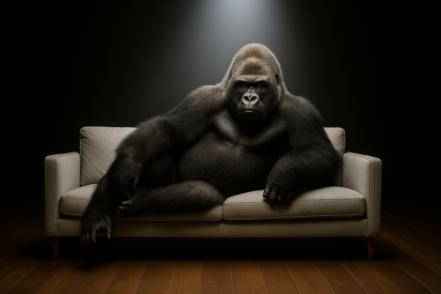 Ein edles Warmblut ruht auf einem hellen Sofa – in einem Raum, der seine Stille spürt. Zwischen Architektur und Atem entsteht ein Dialog von Kraft und Gelassenheit, von Natur und Form. Nichts bewegt sich, und doch füllt die Präsenz des Tieres den gesamten Raum.
